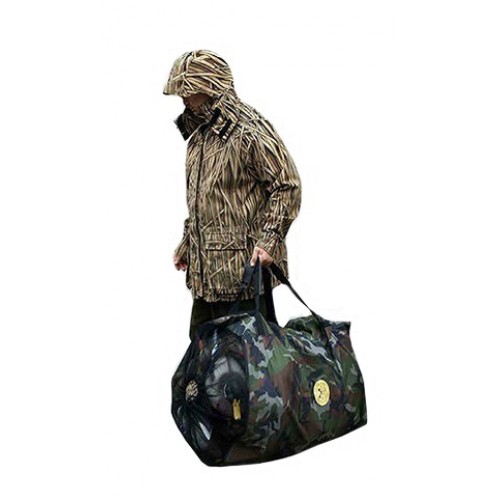 Сумка для переноски чучел выполнена в цвете камуфляж. Расцветка ткани позволит создать эффект маскировки во время охоты.