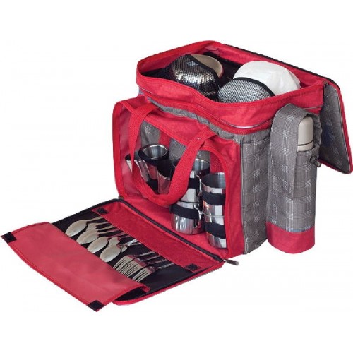 | Комплектация: | термос -1 шт. миска -8 шт. стакан - 4 шт. кружка - 4 шт. стопка - 4 шт. ложка столовая - 4 шт. ложка чайная – 4 шт. вилка - 4 шт. нож хозяйственный - 2 шт. салфетки бумажные -1 упак. |