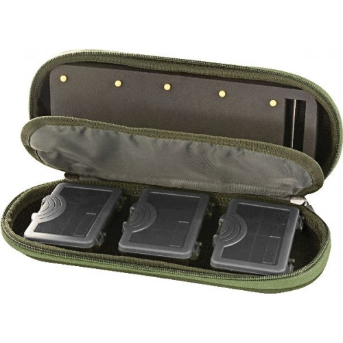 Жесткий кейс из ткани Оксфорд 1200D, который позволяет рыболову организованно хранить все необходимые аксессуары. В комплект входит три пластиковые коробочки, по четыре отсека в каждой. Размер: 30х13х6 см