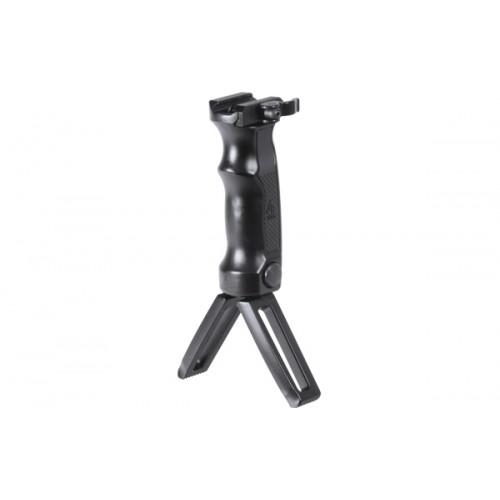 Совмещает в себе тактическую рукоятку переноса огня и сошку для оружия.