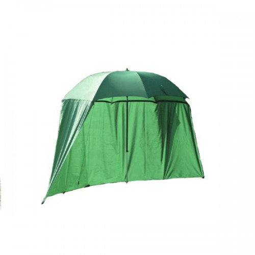 Зонт с тентом - высококачественный зонт универсального назначения. Защищает от ветра и дождя. Он крепится к зонту при помощи молний, а к земле шпильками и дополнительно, в случае сильного ветра, веревками. Под таким полутентом вы сможете комфортно рыбачить в любую погоду.