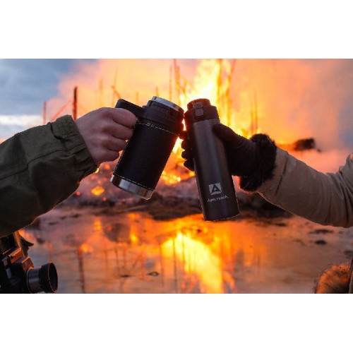 Термокружка Арктика с ручкой в коже 500мл черный