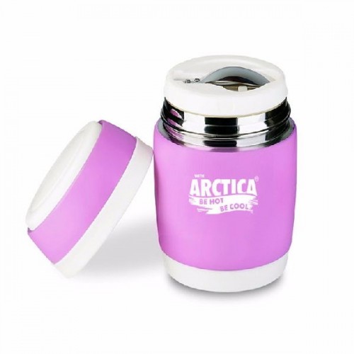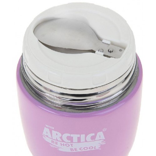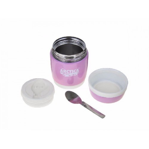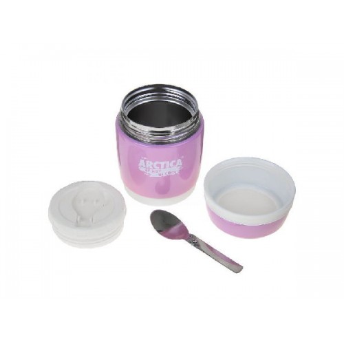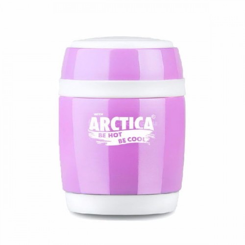 Термос-бочонок Арктика 409-380 выполнен в бело-розовых тонах. Компактный сосуд легко помещается в сумке. Широкое горло диаметром восемь сантиметров дает возможность помещать в посуду первые или вторые блюда.