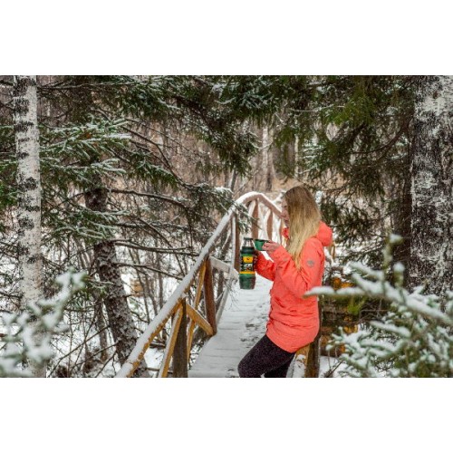 Термос Арктика 109 серии изготовлен из ударопрочной нержавеющей стали и усиленного пластика. Ручка изготовлена из облегченного сплава. Двойные стенки, благодаря технологии ARCTICA STORM, сохраняют температуру содержимого до 38 ч. Конструкция пробки, благодаря специальным каналам, позволяет наливать содержимое в полуоткрытом положении, тем самым уменьшая потери тепла. Высота 320 мм, ширина 130 мм, диаметр горлышка 46 мм. Дополнительно укомплектован двумя чашкам. Донышко оборудовано секцией для хранения чая или спичек. Легко моется, не деформируется. Прошел испытания в условиях тайги в северной Сибири. Гарантия 1 год.