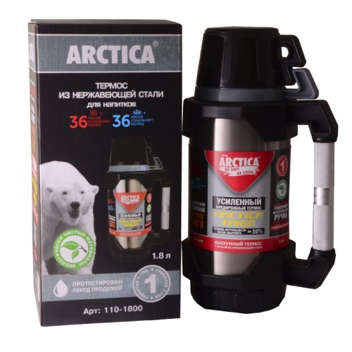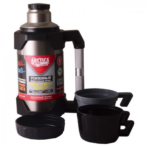 Термос Арктика 110 серии изготовлен из ударопрочной нержавеющей стали и усиленного пластика. Ручка изготовлена из облегченного сплава. Двойные стенки сохраняют температуру содержимого до 36 ч. Высота -325 мм, ширина 170 мм, диаметр горлышка 50 мм. Дополнительно укомплектован двумя чашками на 400 и 450 мл. Донышко оборудовано секцией для хранения чая или спичек. Легко моется, не деформируется. Прошел испытания в условиях тайги в северной Сибири. Гарантия 1 год.
