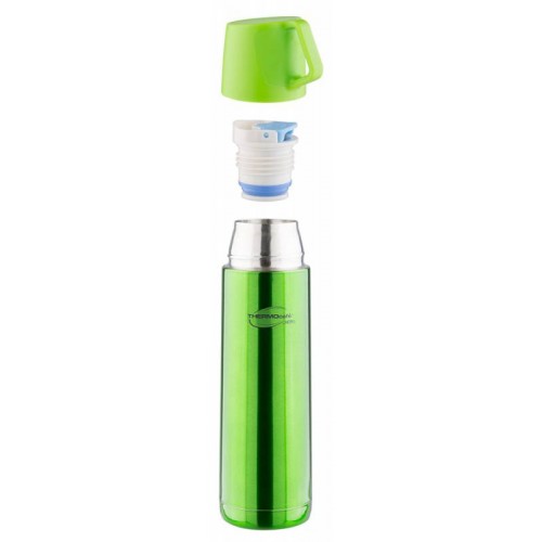 Термос из нержавеющей стали в яркой расцветке. В пробке использован новый механизм открытия/закрытия. Удобная пластиковая крышка-чашка с ручкой.
