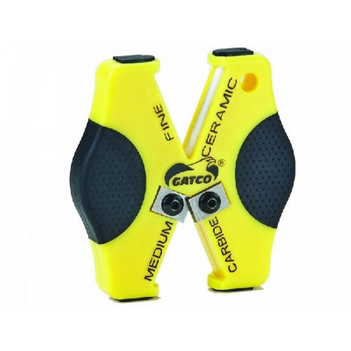 Универсальная керамическая точилка. Два уровня заточки: заточка (вольфрамовые биты) и доводка (керамические стержни). Фиксированный угол заточки для простоты в использовании. Антискользящие накладки для устойчивости при работе с точилкой. Компактные размеры.