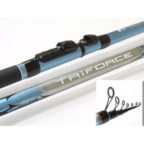 Triforce Bolo - серия недорогих болонских удилищ от компании Daiwa. Удочки Triforce производятся из высокомодульного графита и имеют классический дизайн, в их оснащение входит большое количество пропускных колец с вставками SiC и удобные регулируемые катушкодержатели cлайдерного типа. Удилища данной серии способны выдерживать значительные нагрузки и рекомендуются для ловли крупной, упорной в сопротивлении рыбы: карпа, усача, голавля и других.