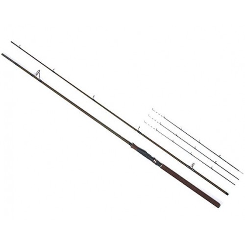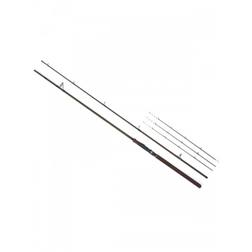 Двухколенный фидер средне-быстрого строя с соединением колен по типу Over Steek. Бланк изготовлен из высокомодульного графита IM7. Фидер укомплектован пропускными кольцами со вставками SIC, классическим катушкодержателем с нижней гайкой крепления. Рукоятка из неопрена с резиновым буфером на торце. В комплект, в пластиковом тубусе, входят три вершинки с разной жесткостью. Материал бланка удилища – углеволокно (IM7). Конструкция штекерная.