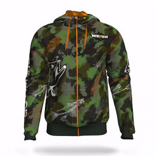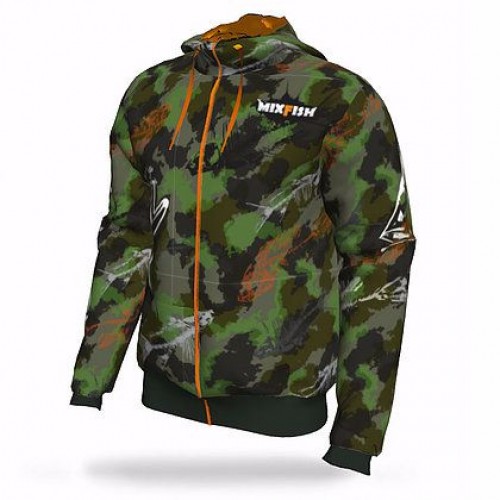 MixFish Bone green оснащена двумя карманами. Не съемный капюшон можно утягивать шнуром.