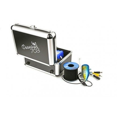 Представляем Вашему вниманию самую популярную и современную камеру для подводной съемки – ФИШКА 703! Модель состоит из влагозащищенной камеры (степень IP68), способной снимать в HD качестве, подключаемой к красочному TFT-монитору диагональю семь дюймов (17,78 см). Устройство храниться в удобном и стильном металлическом кейсе. У экрана имеется специальный солнцезащитный козырек. Камера устройства оснащена мощной двенадцати диодной подсветкой, что делает её использование более практичным.