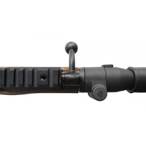 Ложе орудия изготавливается из высококачественной древесины, покрытой сверху лаком, что защищает дерево от влаги, высыхания или внешних повреждений. Приклад же выполнен из полимера, поддается складыванию и регулировке, что делает транспортировку и стрельбу из винтовки более удобными. Для взведения используется затвор болтового типа.