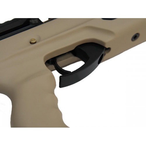 Источником энергии, используемой для производства мощных и точных выстрелов, является воздух, сжатый под давлением в специальном резервуаре.