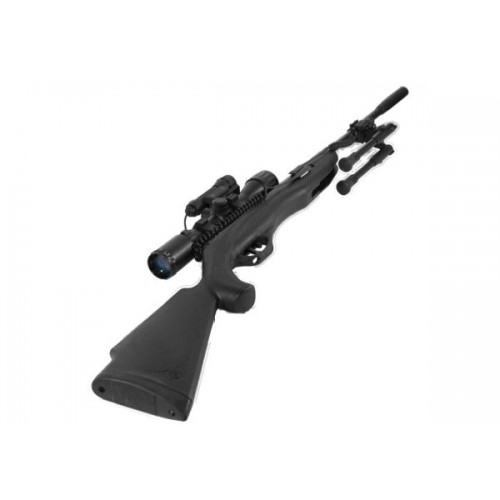 Ложе, а так же приклад винтовки изготовлены из прочного пластика. Длина модели составляет 1130 мм, а её масса 2700 грамм. Хочется отметить, что в основных местах сцепления корпуса с ладонью, пластик модели имеет ребристую фактуру, которая не позволяет модели скользить в руках стрелка. Приклад винтовки оснащен мягким резиновым затыльником, который заметно снижает отдачу модели.