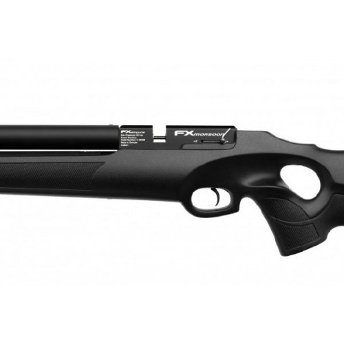 Пневматическая винтовка FX Monsoon (дерево) 5,5 мм - РСР полуавтомат. Эта модель изготовлена по самым передовым технологиям, производится в Швеции. Калибр 5.5 мм и стальной нарезной ствол Lotar Walther с 12-ю нарезами обеспечивают мощную и точную стрельбу. Винтовка оснащена болтовой системой взвода и саундмодератором, позволяющем гасить звуки выстрелов. Удлиненный резервуар (подствольный баллон высокого давления) рассчитан на большое количество выстрелов и оборудован манометром до 200 бар для контроля давления, также в резервуаре установлен редуктор для выравнивания скоростей и мощности. Винтовка FX Monsoon имеет регулируемый спуск. Ложе и приклад изготовленны из качественного пластика. Открытых прицельных приспособлений на винтовке не предусмотрено. Изначально эта модель создавалась для дальней и точной стрельбы, что подразумевает установку оптического прицела.