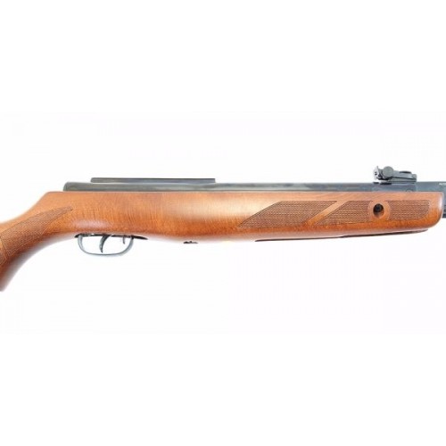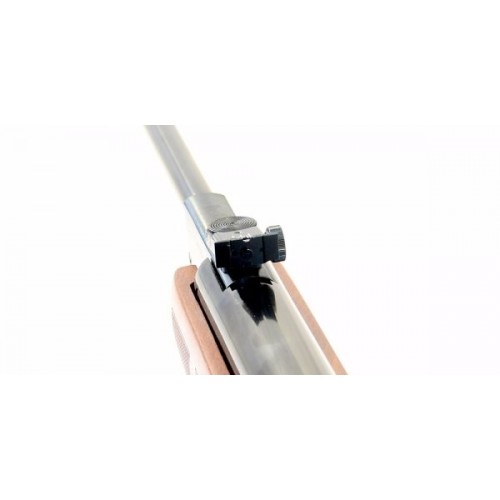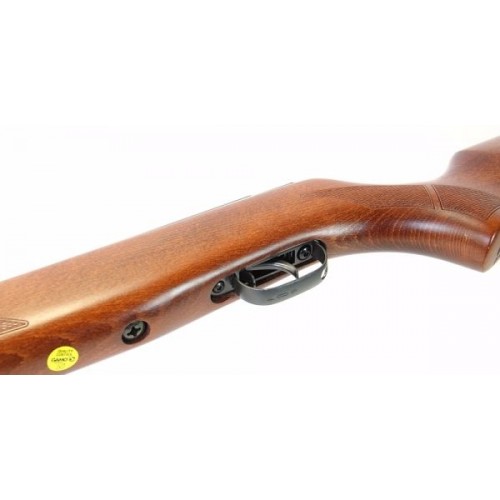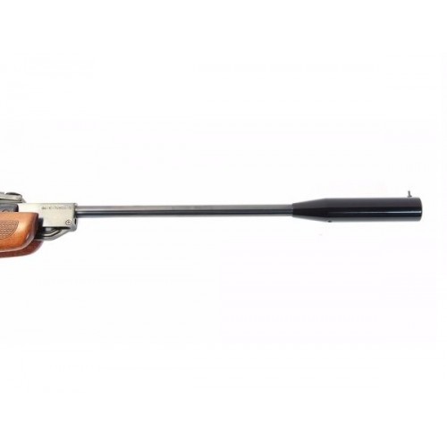 Винтовка изготовлена с применением исключительно качественных стальных сплавов. Деревянное ореховое ложе укомплектовано специальным резиновым затыльником, принимающим на себя всю силу отдачи при выстреле.