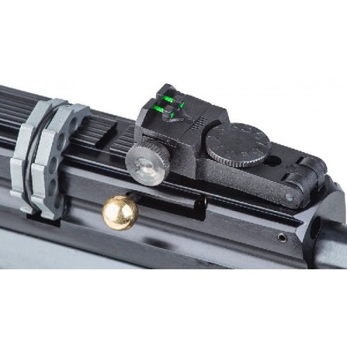 Система защиты от повторного досылания пули. От ложных выстрелов обезопасят автоматический и ручной предохранители. Полностью настраиваемый спусковой механизм Quattro обеспечит аккуратную и прицельную стрельбу. Открытые прицельные приспособления TRUGLO с фибероптическими нитями. Курок винтовки позолоченный, изготовлен из стали. Общая длина винтовки - 108 см, длина ствола - 58 см, вес - 4,3 кг.