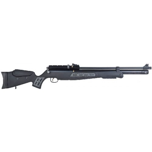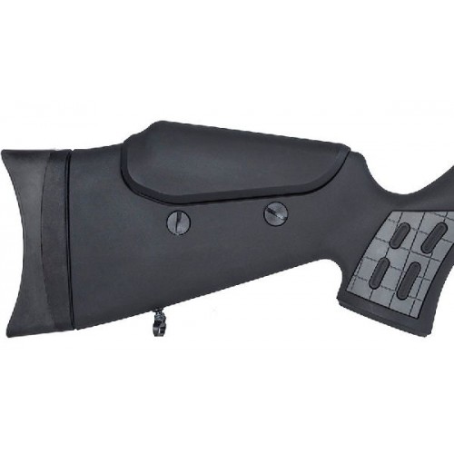 Пневматическая винтовка PCP Hatsan BT65 RB – пожалуй, одна из самых мощных винтовок в калибре 4,5 мм. Hatsan BT65 RB отличается от предшественников увеличенной мощностью и повышенной надежностью перезаряжания (винтовка снабжена задним болтовым взводом). Среди отличительных черт Hatsan BT65 RB - десятизарядный барабан и модифицированное полимерное ложе. Регулируемые по длине затыльник и щека помогут учесть индивидуальные анатомические особенности стрелка, для наибольшего комфорта и точности стрельбы. Резервуар винтовки изготовлен из алюминия. Его объем - 255 см3 (до 300 бар), что обеспечивает до 70 выстрелов на полной мощности. Резервуар можно снять/установить без потери воздуха, что позволяет использовать запасные резервуары. Встроенный манометр позволяет в любой момент проверить уровень давления. На винтовке установлена планка для крепления оптического прицела.