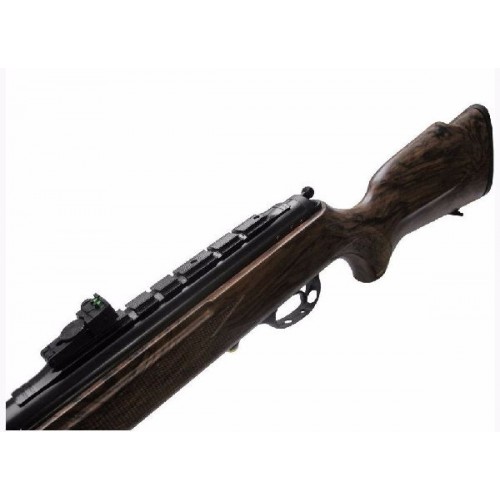 Ствол сделан из оружейной стали. Приклад и ложа изготовлены из качественного пластика. На прикладе имеется мягкий резиновый затыльник, предназначенный для снижения отдачи при стрельбе. Винтовка оборудована специальным рычагом для взведения. Усилие спускового крючка регулируется. Специально для обеспечения удобства стрельбы в стандартный комплект входят сошки. На ложе есть специальные насечки для более удобного хвата. Фибероптические нити на прицельных приспособлениях увеличивают скорость прицеливания. Прицельная планка настраивается по горизонтали, и вертикали, что также улучшает качество стрельбы.