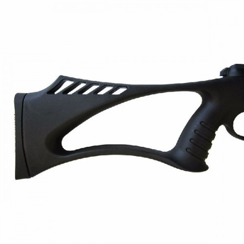 Кнопка предохранителя расположена позади ствольной коробки, что одинаково удобно, как для лево, так и для праворуких стрелков. Пневматическая винтовка оснащена настраиваемым двухшаговым спусковым механизмом. Ход спускового крючка и усилие спуска имеют заводскую настройку. Ход первого шага может быть настроен с помощью винта спускового механизма.