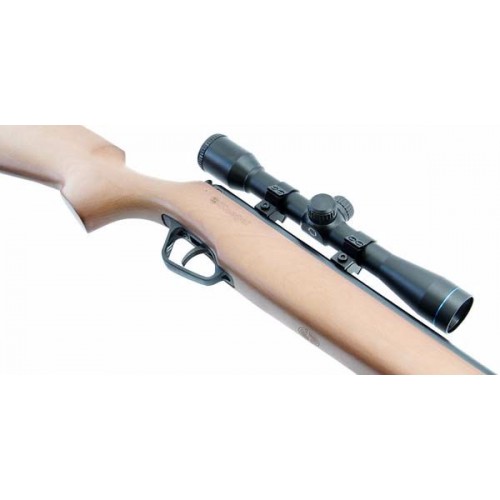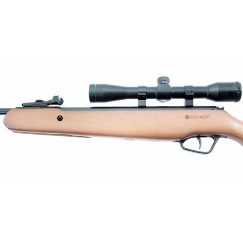 Винтовка Stoeger X 10 Wood Combo выполнена в строгом классическом виде с использованием последних технологий и высококачественных материалов. Это аналог испанской Gamo Hunter 440, однако выполненый на на более высоком уровне и с большим количеством стальных деталей. Взвод винтовки осуществляется переламыванием ствола. Ствол винтовки выполнен из оружейного металла, внутри - четкая нарезка, что положительно сказывается на точности выстрела. В казённой части ствола установлено уплотнительное кольцо, обеспечивающую герметизацию узла компрессор-ствол в момент выстрела. На конце ствола - надульник, защищающий переднюю фаску и облегчающий перезаряжание. Ложа эргономичной формы выполнена из плотной древесины. Резиновый затыльник гарантирует идеальное поглощение отдачи и удобный захват без скольжения в руках стрелка. Ударно-спусковой механизм из ударопрочного полимера обеспечивает хорошую защиту двухступенчатого спускового крючка. Спусковой крючок регулируется на заводе и оснащен винтом, позволяющим увеличивать длину хода на второй ступени. В комплект поставки входит оптический прицел 4х32 на кольцах. Общая длина винтовки - 108 см, вес - 3,4 кг, начальная скорость пули: 305 м/с.