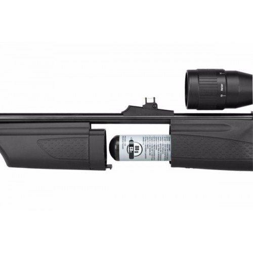 Пневматическая винтовка газобаллонного типа. В качестве источника энергии для стрельбы используется сжатый под давлением 300 атм. углекислый газ в баллоне (применяется стандартный баллон 88 г).