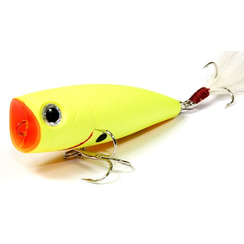 Bevy Popper – яркий представитель популярного в последнее время класса приманок – топвотеров, т.е. самых мелководных, поверхностных. Этот поппер, издавая характерные, булькающие звуки и разбрызгивая перед собой воду, способен издалека привлечь к себе хищную рыбу и поднять её к поверхности. Приманка, обладая небольшими размерами и весом, будет интересна в первую очередь поклонникам легкой снасти.