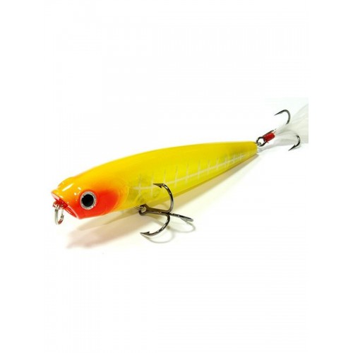 Эта приманка может легко скользить по поверхности воды, двигаясь из стороны в сторону, словно уокер. При этом, ее передняя часть создает большое количество брызг и шума, словно поппеp. Узкий силуэт и специальная огрузка в хвостовой части, делает Gunlish невероятно дальнобойной приманкой. Эта особенность пригодится не только при ловле в ветер. Добросить до жереха, гоняющего малька в коряжнике, или до внезапно возникшего окуневого «котла» будет проще, чем с другими топ-вотерами. В зависимости от условий, используйте ее как уокер или поппер, комбинируя техники проводки этих приманок. Самый маленький размер подойдет для ловли окуня, модель длиной 95 мм. самая универсальная и ловит не только щуку, но и жереха, басса, а так же морских рыб. Более крупные версии приманок востребованы при целенаправленной ловле щуки. Серьезные размеры этих приманок «отсекают» мелочь, позволяя сконцентрироваться на поимке щуки приличного размера.