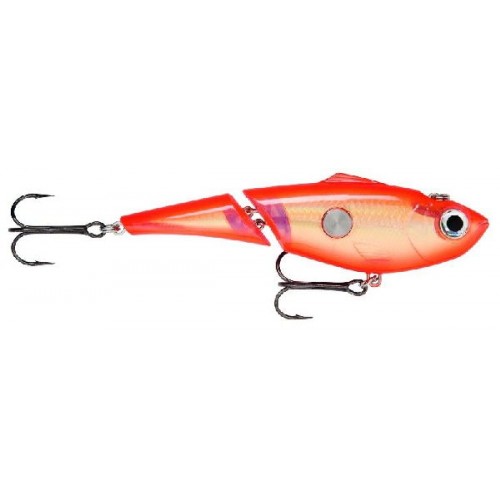 Воблер Rapala Jointed Clackin Rap JCNR14 - искусственная приманка, которая состоит их двух частей. Характеризуется отсутствием лопасти и способностью медленно погружаться в воду, совершая плавные, натуральные движения. По ширине корпуса расположена короткая пустая трубка с наружными заглушками. В ней содержится металлический шарик, который свободно перекатывается, ударяется о стенки и создает высокочастотные звуки, которые привлекают хищников.