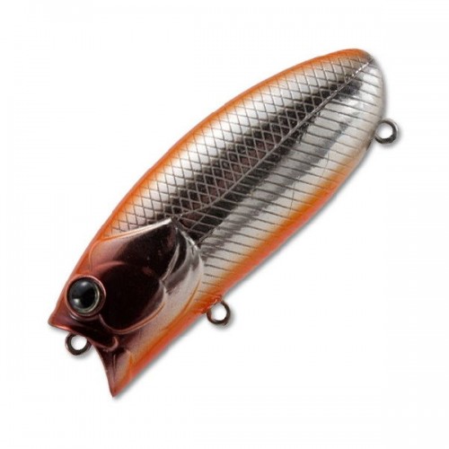 Корпус приманки имеет необычную для подповерхностника «пузатую» форму, свойственную скорее крэнкам. Вместо лопасти почти попперная ,но не так явно выраженная ,чаша, с более выдающейся вперед нижней частью. В воде BAD 60F занимает горизонтальное положение, с выступающей над поверхностью воды спиной.