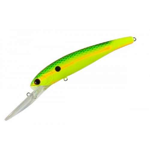 При отпуске шнура ( 0.2 мм ) около 40 -метров и скорости катера 3.5 - 4.0 км / час воблер заглубляется глубже 6 метров, показывая при этом малоамплитудную высокочастотную игру,характерную для приманок хорошо работающих по судаку. Наилучших результатов воблер добивается,если во время проводки он будет время от времени касаться дна,выбивая муть со дна. Не надо бояться зацепов при этом. Широкая и прочная лопата надежно защитит крючки воблера. Цветовые решения ,позволят Вам без труда подобрать нужную модель под любые условия ловли.