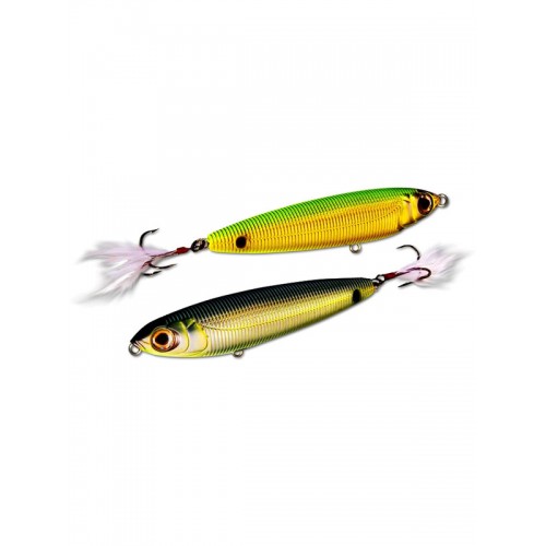 Воблер Yo-Zuri Sashimi Pencil FW/SW - это поверхностная приманка плавающего типа. Воблер выполнен по новаторской технологии, позволяющей ему менять цвет окраса в зависимости от угла освещения (технология "хамелеон"). Наилучший результат дает твичинг (проводка с резкими рывками и остановками). Приманка идет с широкими колебаниями в разные стороны, создавая отчетливые шумовые эффекты (усиленные акустической камерой внутри корпуса), привлекая к себе внимание хищной рыбы на очень большом расстоянии.