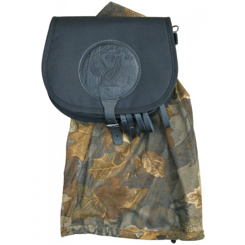 Ягдташ изготовлен в традиционной форме из специальной ткани. Имеет два отделения для снаряжения. Оснащен подвеской «Утятница» и сетчатым мешком для дичи. Для дополнительного крепления на поясной ремень ягдташи комплектуются двумя быстросъемными шлевками. В производстве используется итальянская фурнитура, которая практически не звенит и не дает бликов. Раскрой производится на специальном оборудовании, что гарантирует высокое качество изделий. Изделие украшено миниатюрами охотничьей тематики, нанесенными методом горячего тиснения. Изделия, выполненные из этой ткани, будут служить долгие годы, сохраняя свой первозданный вид.