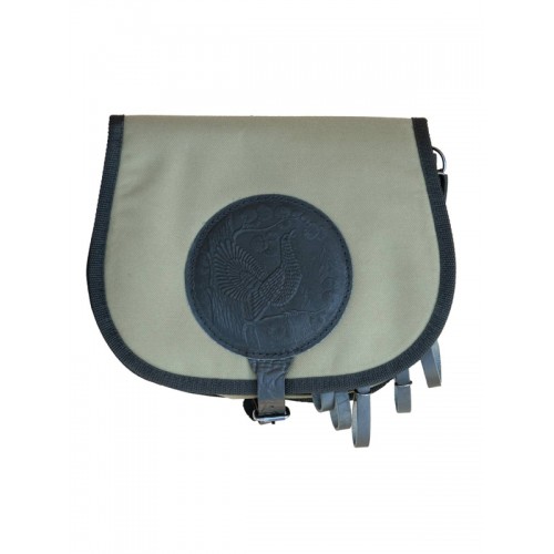 Ягдташ изготовлен в традиционной форме из специальной ткани. Имеет два отделения для снаряжения. Оснащен подвеской «Утятница» и сетчатым мешком для дичи. Для дополнительного крепления на поясной ремень ягдташи комплектуются двумя быстросъемными шлевками. В производстве используется итальянская фурнитура, которая практически не звенит и не дает бликов. Раскрой производится на специальном оборудовании, что гарантирует высокое качество изделий. Изделие украшено миниатюрами охотничьей тематики, нанесенными методом горячего тиснения. Изделия, выполненные из этой ткани, будут служить долгие годы, сохраняя свой первозданный вид.