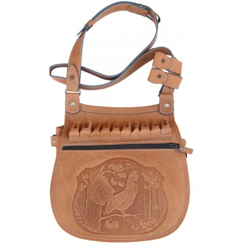 Ягдташ изготовлен в традиционной форме из натуральной кожи. Имеет два отделения для снаряжения и карман в клапане для документов. Оснащен двумя патронташами для 18 патронов, подвеской «Утятница» и сетчатым мешком для дичи. Для дополнительного крепления на поясной ремень ягдташи комплектуются двумя быстросъемными шлевками. В производстве используется итальянская фурнитура, которая практически не звенит и не дает бликов. Раскрой производится на специальном оборудовании, что гарантирует высокое качество изделий. Изделие украшено миниатюрами охотничьей тематики, нанесенными методом горячего тиснения.