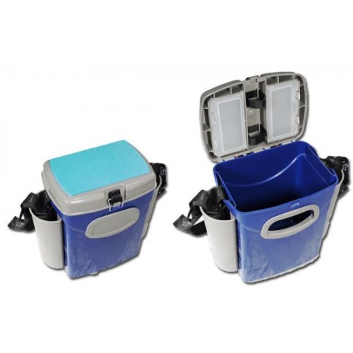 Высота ящика - 36 см, что соответствует нормам эргономики и обеспечивает комфорт в положении сидя для человека ростом 170-180 см. Небольшой размер отразился на массе ящика, она составляет всего 1,5 кг - это своеобразный рекорд при сравнении с аналогичными изделиями из металла и пластика от других изготовителей. По предложению рыболовов-практиков в ящике сделано удобное по форме и размеру отверстие в передней стенке, куда, не вставая с сиденья, можно быстро положить пойманную рыбу прямо в закрепленный внутри ящика пакет. В боковых навесных емкостях хранятся запасные, готовые "к бою" удильники, черпак, багорик, то есть все, что должно быть под рукой. Регулируемый по длине плечевой ремень пропущен через не выступающие за пределы ящика проушины.