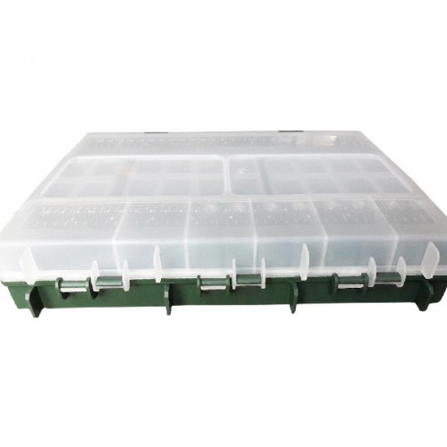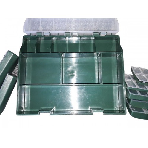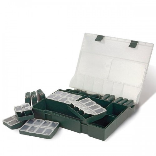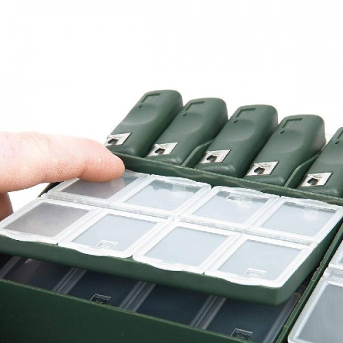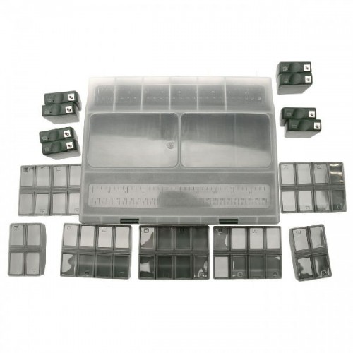 Chub Smart Box – комплексный набор для рыболова, позволяющий организованно хранить все предметы оснастки включает в себя пять коробок разного размера и восемь хранилищ для лески. Дизайн контейнера тщательно продуман с учетом требований эргономики, внутренние коробки для аксессуаров очень легко извлекаются. В основной коробке имеются десять постоянных отделений. В набор входят: большие коробки для аксессуаров на 2-4 и 8 отсеков и две коробки меньшего размера на 4 отсека. Также есть две мелкие коробки на 8 отсеков, идеально подходящие для хранения маленьких предметов оснастки: вертлюгов, бусин и колец. Также в набор входит восемь хранилищ для лески/шнура. У коробки есть прозрачная крышка, которая закреплена на надежных пластиковых петлях. Крышка надежно фиксируется при помощи специального замка. Крышки всех боксов, находящихся внутри плотно фиксируются, поэтому исключено выскакивание элементов оснасток из своих ячеек, даже в случае, если коробка переворачивается.