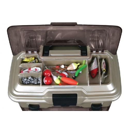 В нижней части располагаются 2 коробки 3003 Tuff Tainer, 1 коробка 1002 Tuff Tainer. Внутри ящика 2 коробки 4007 Tuff Tainer. В каждой коробке можно с удобством разместить значительное количество приманок, аксессуаров и прочего снаряжения. Каждая из них разделена на множество отделений, позволяя оптимально организовать снаряжение. Коробки и разделители сделаны по технологии Zerust .