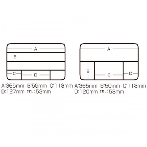 -глубина верхнего отсека: 53мм; глубина нижнего: 58мм