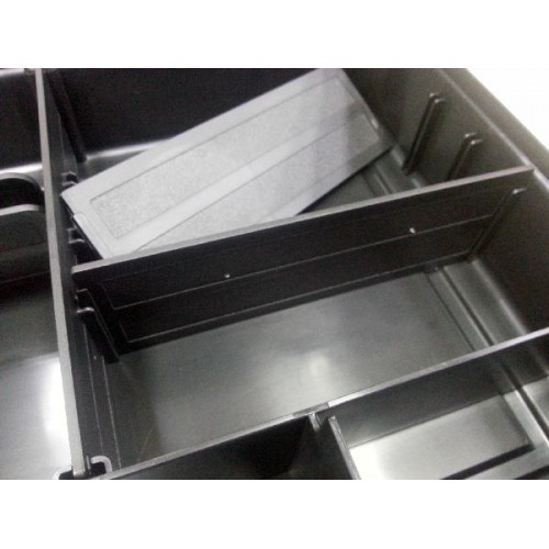 В нижнем отсеке 4 фиксированных отделения и 5 сменных перегородок. которые могут увеличить количество отделений до 9. Материал корпуса - ударопрочный сополимер Shock-resistant Copolymer , крышка - качественный ABS-пластик .