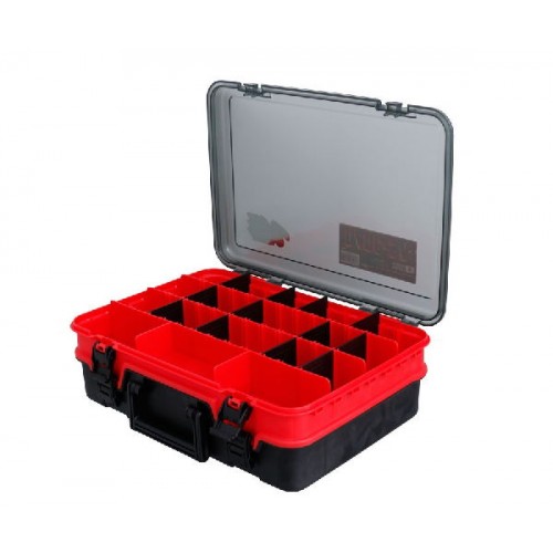 Двухярусный ящик-чемодан для рыболовных снастей Pontoon21 VERSUS VS-3070 с прозрачной верхней крышкой. Отличный вариант для форелевой рыбалки, по мимо этого отлично подойдет под пилкеры и оснастки. Каждый отсек разделен на несколько секций. Прозрачная крышка позволит легко и быстро найти нужную приманку, оснастку и прочий инвентарь. Удобная ручка позволяет без особых усилий транспортировать ящик в ручной поклаже. Размер и количество ячеек изменяется с помощью съёмных перегородок. В верхей секции 6 фиксированных отделений, и 12 сменных перегородок, которые могут увеличить количество отделений в верхнем отсеке до 18.