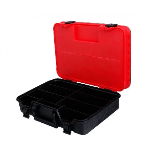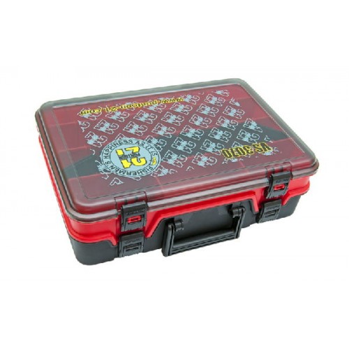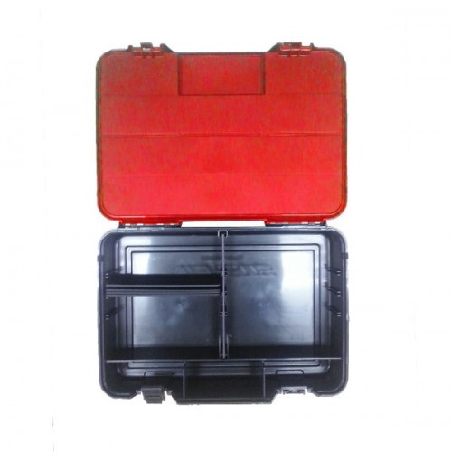 В нижнем отсеке 4 фиксированных отделения и 5 сменных перегородок. которые могут увеличить количество отделений до 9. Материал корпуса - ударопрочный сополимер Shock-resistant Copolymer , крышка - качественный ABS-пластик .