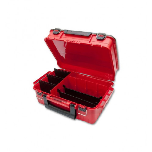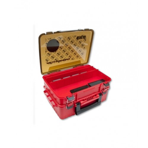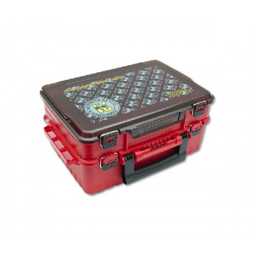 Верхний отсек укомплектован 11 разделителями двух размеров, причем "микросетка" для их установки позволяет рационально использовать все 100% объема. Геометрия верхнего отсека позволяет установить в него более мелкие коробки для приманок типа VS-318, VS-388 или любые коробки серии Meiho SFC размера LL.