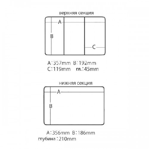 | Дополнительная информация: | верхняя секция: 35,7x19,2x4,5 см; нижняя секция: 35,6x18,6x21 см |