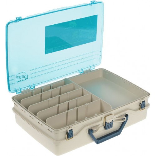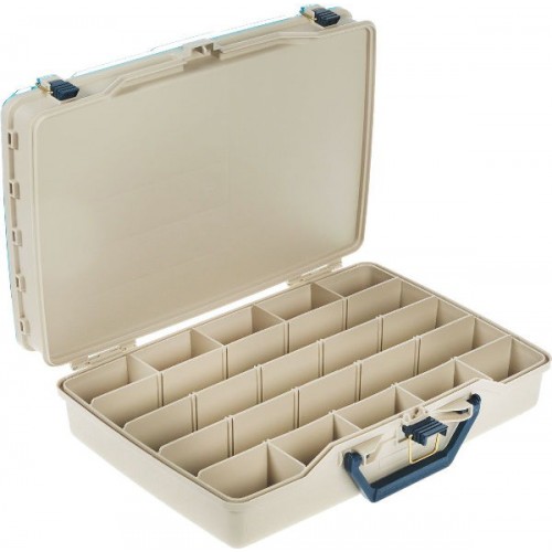 Тринадцать секции и двенадцать съемных перегородок в нижнем отделении. Прозрачный пластик в крышке позволит безошибочно и быстро найти необходимый предмет. Благодаря удобной качественной ручке транспортировка осуществляется без проблем. Надежная и безопасная система запирания в виде латунной защелки. Материал ящика: крышка - поликарбонат Polycarbonate , материал корпуса - из ударопрочного безопасного пластика.