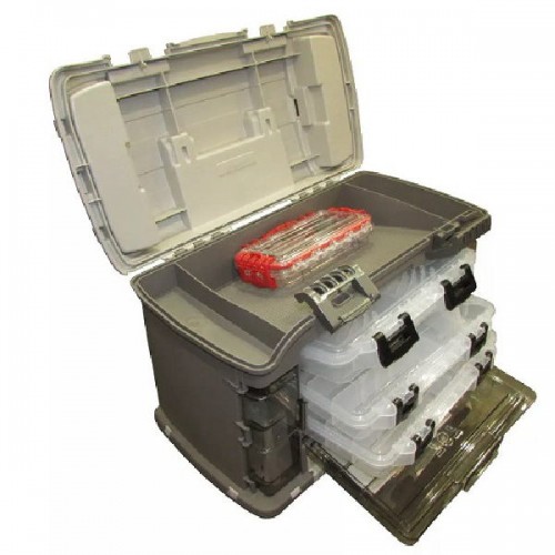 Plano 767-000 - вместительный многосекционный рыболовный ящик с выдвигающимися контейнерами. Выполнен из высокопрочного и безопасного пластика. Предназначен для длительного хранения и транспортировки рыболовных снастей (в том числе силиконовых приманок).