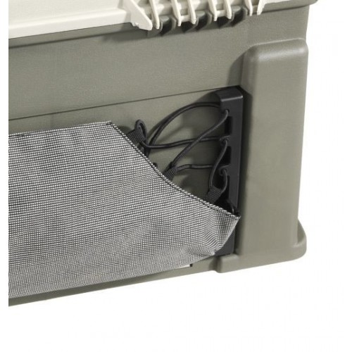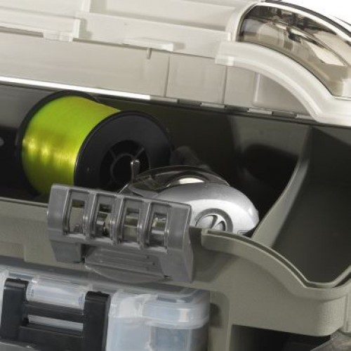 Головное отделение ящика снабжено небольшими отсеками, расположенными под углом 15 градусов для удобства доступа к принадлежностям. В крышке есть два отделения для быстрого доступа к приманкам. инструментам, закрываются прозрачными крышками DuraView . В задней части ящика есть регулируемый карман. Комплектуется двумя коробками Plano 2-3650, двумя коробками Plano 3455-00, одной коробкой Plano 3607-04 и одной коробкой Plano 4648-1