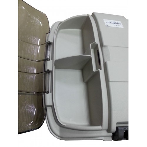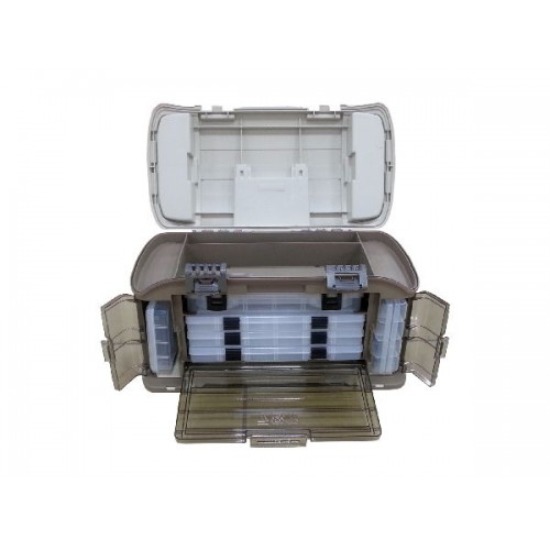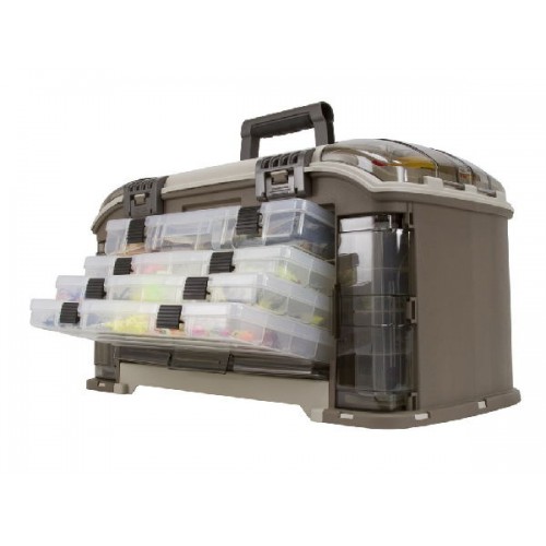 Головное отделение ящика снабжено небольшими отсеками, расположенными под углом 15 градусов для удобства доступа к принадлежностям. В крышке есть два отделения для быстрого доступа к приманкам. инструментам, закрываются прозрачными крышками DuraView . В задней части ящика есть регулируемый карман. Комплектуется тремя коробками Plano 3701, одной коробкой Plano 2-3650, двумя коробками Plano 3601, одной коробкой Plano 3650