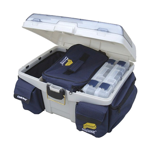 Plano 7936-00 - это гибрид пластикового ящика и тканевой сумки. В центре ящика расположено отделение-«холодильник» для напитков, в котором помещаются 6 банок, и которое также можно использовать для пойманной рыбы. Там же расположены отделение для хранения наживки и отделение с двумя коробками модели Plano 2-3600. Боковые карманы - съемные сумки. Также в верхней части сумки (крышке) находятся два подстаканника.