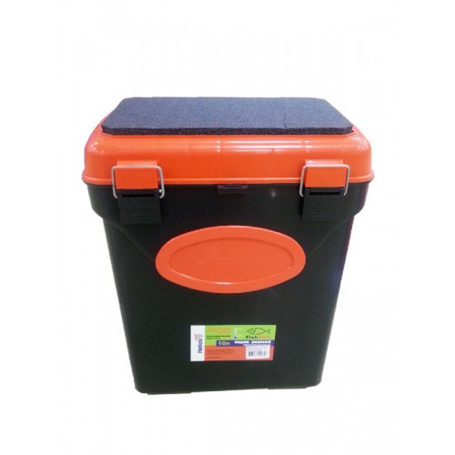 Материал - морозоустойчивый, ударопрочный пластик, который не впитывает и не пропускает воду. Пластик не подвержен деформациям и прекрасно удерживает первоначальную форму ящика даже при значительном весе рыбака. Максимальная нагрузка на ящик – 120 кг. Ящик из такого пластика не впитывает запахи и легко отмоется от рыбной слизи, глины и других загрязнений.